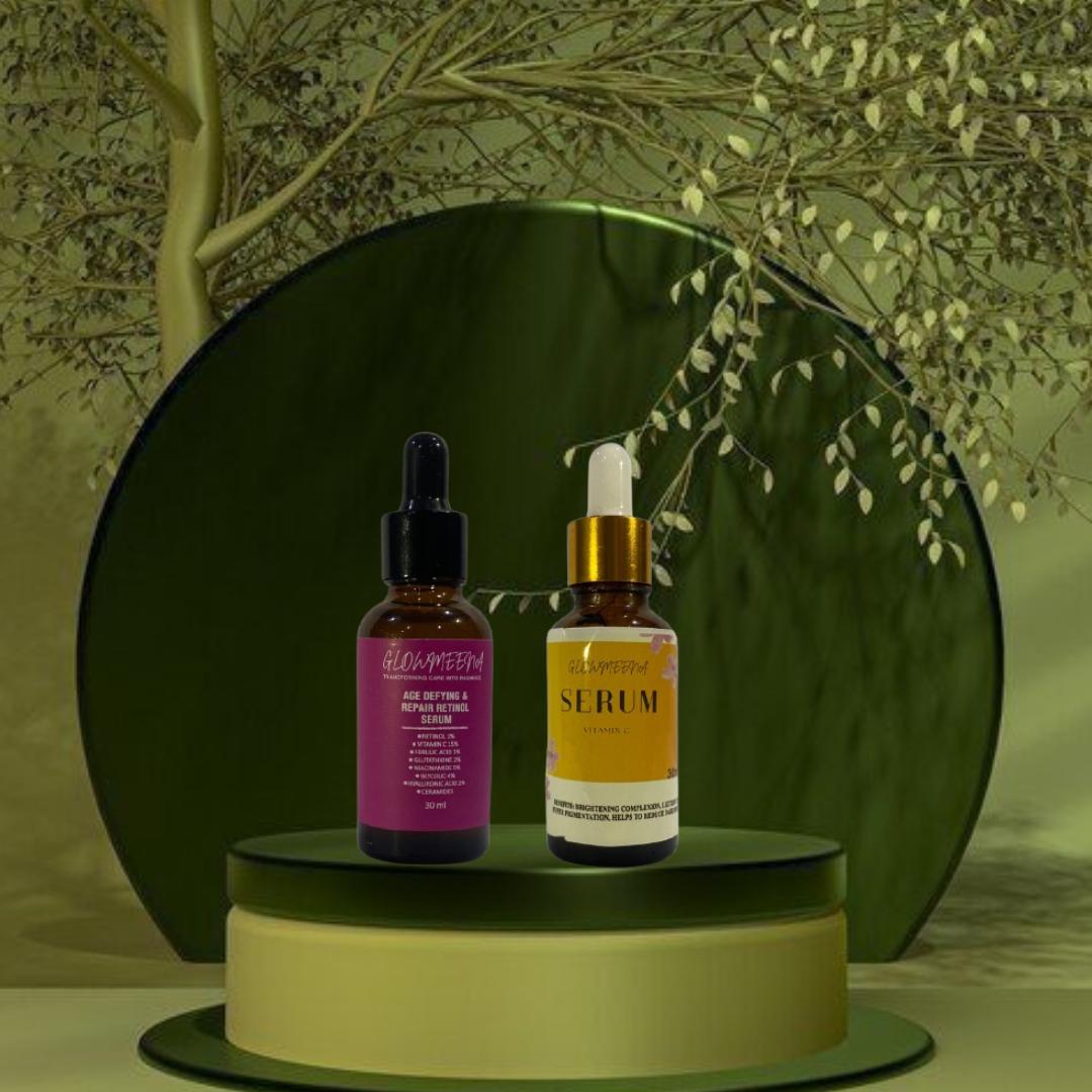 Treat your skin to the ultimate glow-up with GlowMeeth’s Age-Defying & Repair Retinol Serum and Vitamin C Brightening Serum. Imagine waking up to smoother, firmer skin as the retinol serum works overnight to soften fine lines and bring back that youthful bounce. Then, layer on the vitamin C serum to brighten your complexion, fade dark spots, and give your skin a radiant, even tone. Together, they’re like a dream team for your skincare routine—helping you feel confident and glowing from the inside out. With GlowMeeth, it’s not just about looking good; it’s about feeling amazing in your own skin. Your glow, your way.